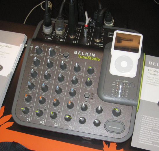 Belkin komt binnenkort met een uniek product voor wie als hobby muziek maakt met een amateur band. Met de TuneStudio kun je je iPod omtoveren tot een heuse vierkanaals opnamestudio. Het kastje bevat een viertal ingangen voor instrumenten en/of microfoons, welke direct afgemixed kunnen worden. Door een iPod in het apparaat te plaatsen wordt direct niet alleen het eindresultaat opgenomen, maar ook de vier afzonderlijke sporen, zodat je later op de PC de gemaakte muziek nog op een betere manier kunt afmixen. Om de mogelijkheden van de TuneStudio aan te prijzen liet Belkin op haar IFA stand een band via het apparaat haar kunsten ten gehoren brengen en dat klonk bijzonder goed. De TuneStudio zal voor het eind van het jaar in de winkel liggen voor een bedrag tussen 200 en 300 euro en dat is zeker iets wat iedere amateurband wel moet kunnen investeren.