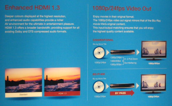 Tijdens de IFA beurs hebben de meeste levenranciers van Blu-ray spelers een tweede generatie van hun apparaten getoond. De trend is gezet; wie zich heeft kunnen inhouden en nog geen speler heeft gekocht kan binnenkort genieten van spelers met een HDMI 1.3 uitgang en ondersteuning voor 1080p24. Het belangrijkste voordeel van HDMI 1.3 is de grote kleurruimte die deze standaard bevat; wanneer je TV eveneens HDMI 1.3 bevat heb je dus potentieel een betere beeldkwaliteit. Daarnaast bevat HDMI 1.3 ondersteuning voor nieuwere typen geluidstracks met betere geluidskwaliteit, waaronder Dolby True HD en DTS HD. Een ander voordeel van de nieuwe spelers is de ondersteuning voor 24p output. Films staan op Blu-ray schijven immers altijd met hun originele framerate van 24 beelden per seconde. Bestaande Blu-ray spelers gaan die eerst omvormen tot 50 of 60 beelden per seconden om te voldoen aan de oude NTSC- en PAL-normen. Deze omzetting komt de kwaliteit natuurlijk niet ten goede. De nieuwe spelers sturen het beeld ongewijzigd ook met 24 beelden per seconde naar buiten. Als je TV zo'n 1080p24 signaal snapt heb je de allerbeste beeldkwaliteit bij Blu-rays te pakken. Eén van de eerste spelers volgens de nieuwe normen is de Samsung BD-P2400 die spoedig in de winkel moet gaan liggen.
