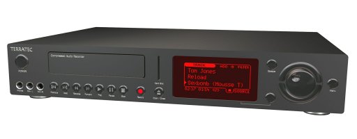 TerraTec’s C.A.R. 4000 transporteert alle MP3 functionaliteit naar je HiFi installatie. De C.A.R. 4000 maakt het mogelijk om elke gewenst audio signaal op te nemen en op te slaan op de geïntegreerde harddisk. Opnames van een tape deck, equalizer of microfoon zijn niet langer meer een probleem. Tijdens de IFA 2001 in Berlijn, werd deze digitale jukebox voor het eerst aan het publiek gepresenteerd. De C.A.R. 4000 biedt je eindelijk de mogelijkheid om audio CD’s op de geïntegreerde harddisk op te slaan (capaciteit voor 240 CD’s) terwijl je ze afspeelt met behulp van de Digital Selection Feature. Een volledige CDDB ondersteuning maakt deze functie nog uitgebreider door het automatisch detecteren van de artiest, album en titel van een track. De grafische display geeft informatie over alle geactiveerde functies. Bovendien kun je het formaat van de opnames selecteren: realtime MP3 compressie of ongecomprimeerde WAV file in volledige kwaliteit. Ook is er een digitale ingang voor bijv. MD aanwezig. De uitgangen: standaard stereo line output voor aansluiting op een versterker, een optische digitale uitgang en een instelbare koptelefoon uitgang. Het geïntegreerde slot voor memory cards (MMC) maakt het mogelijk om bijvoorbeeldeen aantal tracks van je MiniDisc naar een memory card te schrijven, om die vervolgens op je draagbare MP3 player af te spelen. Uiteraard kun je de C.A.R. 4000 ook eenvoudigweg gebruiken om audio tracks af te spelen. Audio of data CD’s, playlists of Winamp playlists kunnen ook worden gelezen, afgespeeld en veranderd. Andere features zijn: de uitgebreide timer functie voor opnames en reproducties, automatische signaal-herkenning voor opnames, Partylock met wachtwoord-protectie tegen ongeoorloofd gebruik, en een aan te passen interface (normal en advanced). De meeste van